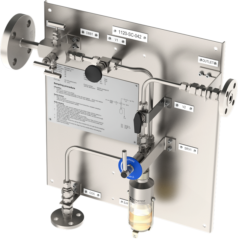 The “needle” type bottle sampler for liquids is closed loop, this systems enable operators to obtain samples of liquids, hazardous or toxic. The bottle samplers without needles can be used as closed loop sampler on low process or vapor pressures, non hazardous or toxic, water or viscous solutions. The spot sample collected in a sample bottle is more safe and easy for transportation to the lab. Slim custom made design make the Mechatest systems the best choice for any customer specific application.