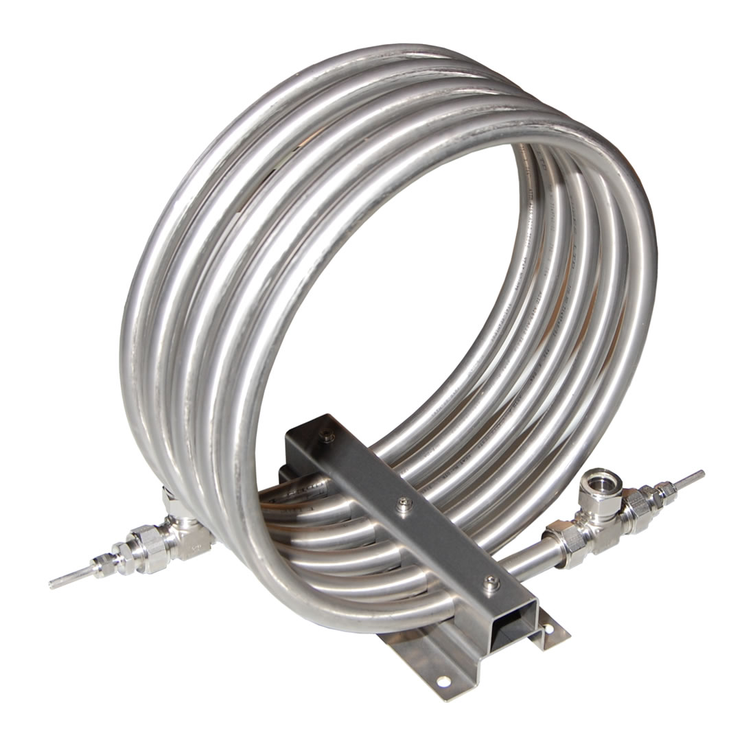 Tube-in-tube cooler (heat exchangers) are spirally wound, full counter flow heat exchangers well suited for a variety of applications where low flow rates of high temperature and/or high pressure fluids need cooling or heating. Also known as DTC (dual tube coil). We offer Mechatest and Sentry tube-in-tube coolers.