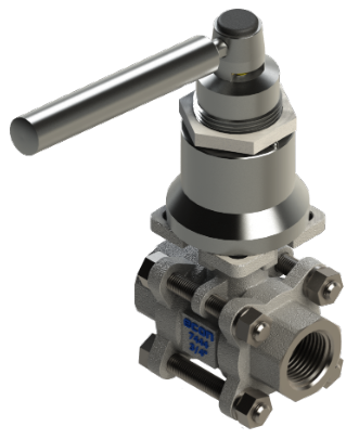 The Mechatest spring return handle can directly mounted to ISO-5211 types 3-piece ECON ball-valves, available for standard valves;